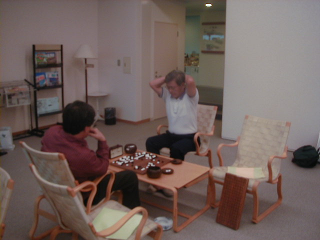 この廊下での対局は、唯一の喫煙可能エリア、そのおかげで喫煙者に人気があるようです。 |