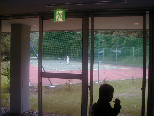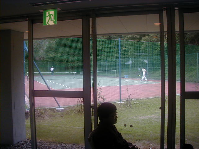 表彰式までの時間を利用してテニスをやっているようです。 |