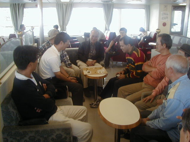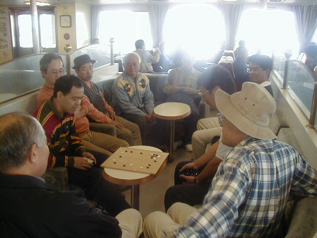 フェリーの中で、加藤さんと谷野さんの対局が始まりました。