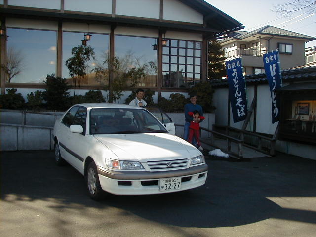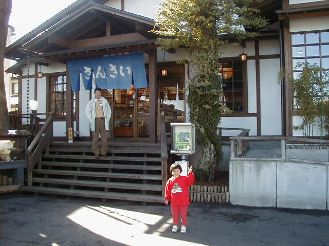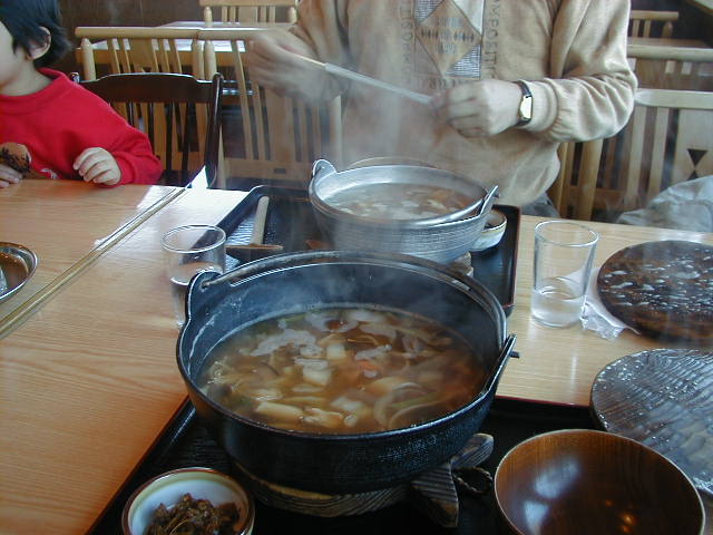 近くのほうとうの店で昼ごはんだよ。ピース! |