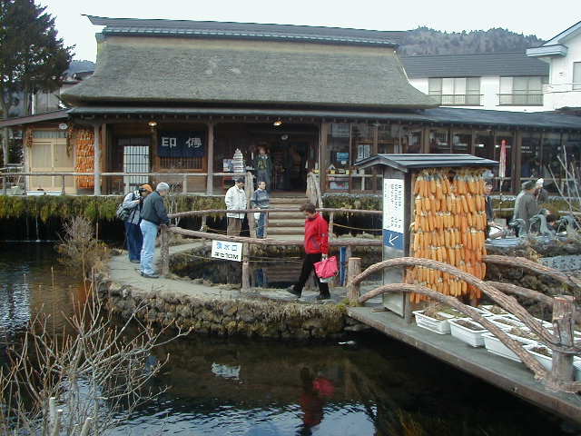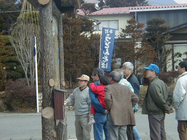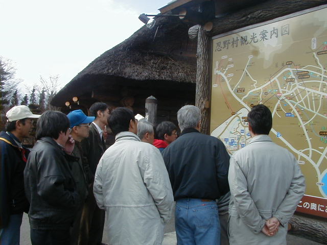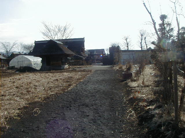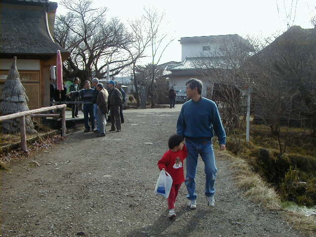 わらぶき屋根の民家も珍しいですね。それに立派な門構えです。そんなことより、早く昼食にしよう!という声が聞こえてきました。 |