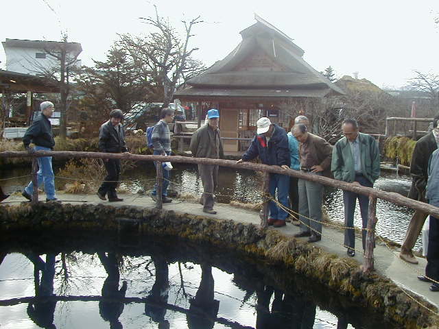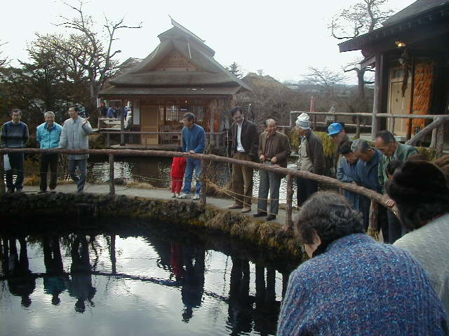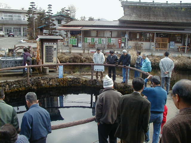 中に行ってみました。円形の池を皆、熱心に眺めています。 |