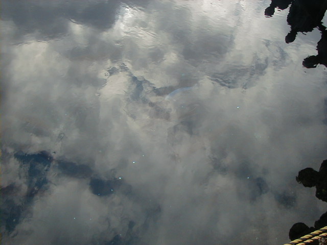反射した雲ばかりが写ってしまいます。(人間の肉眼ではかなり深いところまで認識できています。写真だとだめなようです。) |