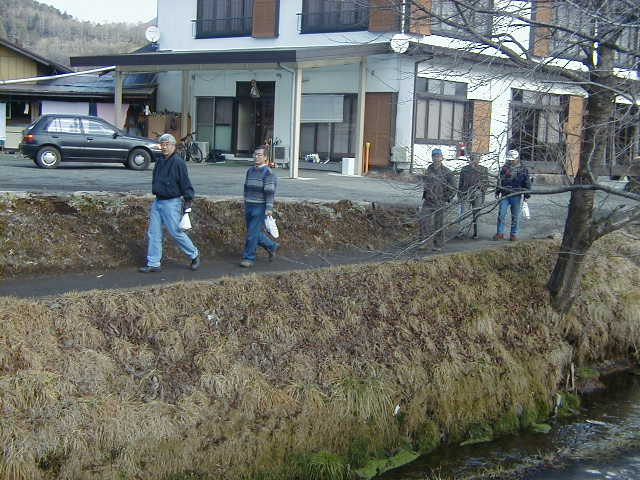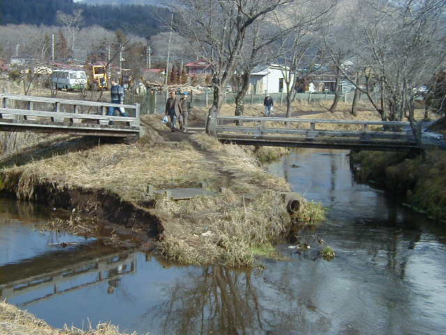 小川のほとりの道を進んでいきます。田舎に帰ったような気分です。 |
