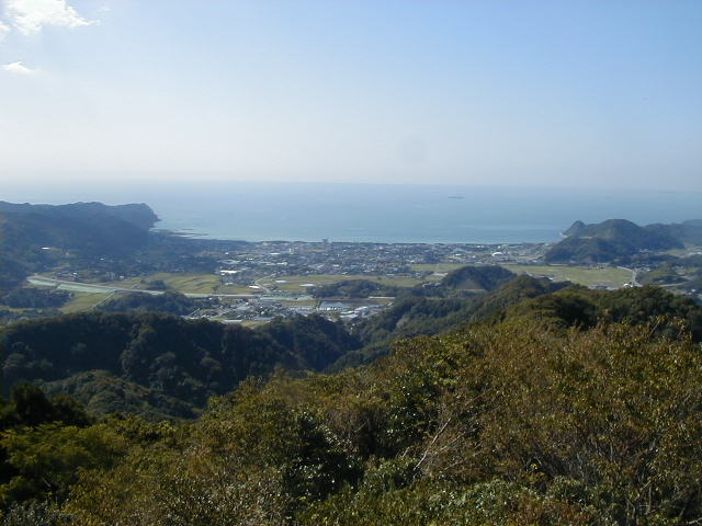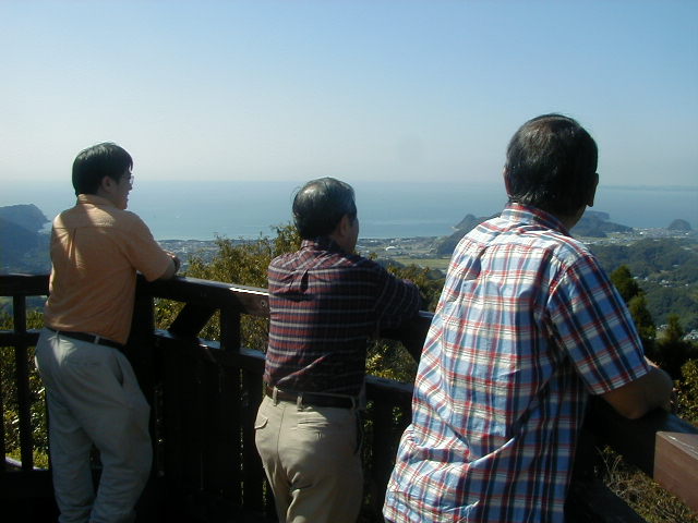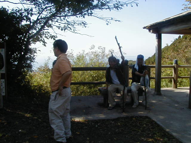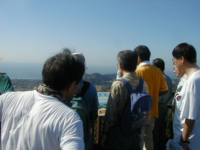 あの山がさきほど弁当を食べたあたりの山なんだそうです。「ええ、もう、こんなに歩いてきたの?」 |
