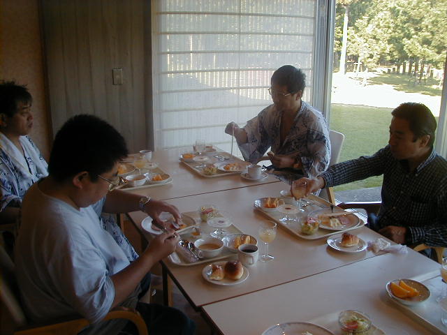 谷野、岸原、金子組は、いつも朝が遅く、最後のほうの朝食ばかりでした。 |