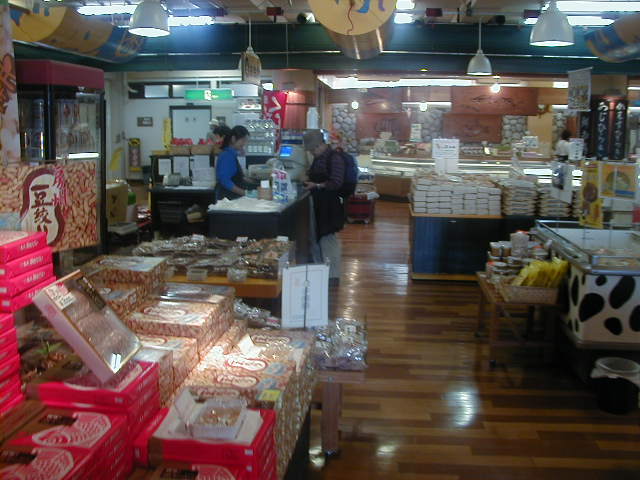 帰りは、フェリー乗り場でおみやげを物色します。 |