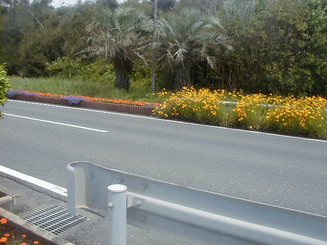 このあたりの道路は花がしきつめられていて、とてもきれいですね。 |
