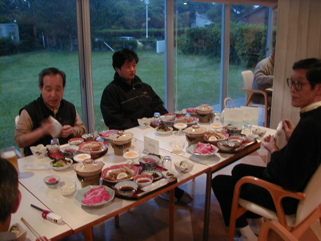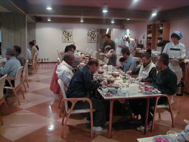 ずらり、と並んで食事です。 |