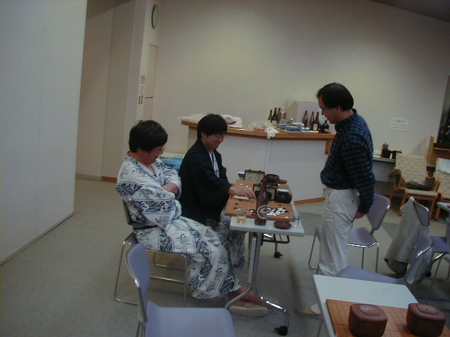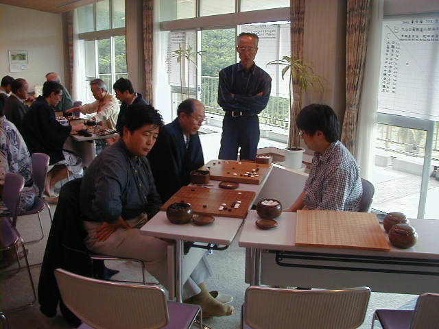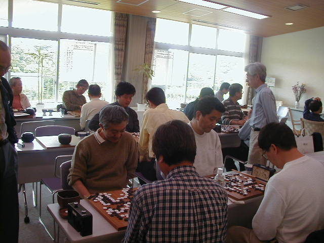この日は、外の天気が悪く、ハイキングは中止となりました。 そこで、囲碁ざんまい、、 |