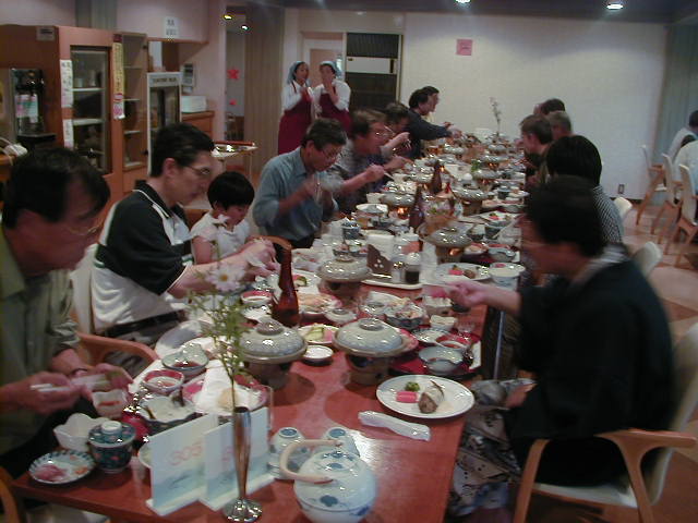 ずらりとならんで、舌鼓をうちます。 |