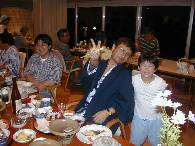 夕食の時間になりました。このテーブルは、ひときわ、賑やかでした。 |