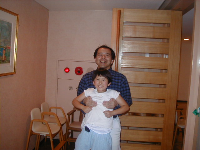 先生と一緒に、うつってもらおう!と、しましたが、、、後ろに通りすがりの変なおじさんが、、、 |