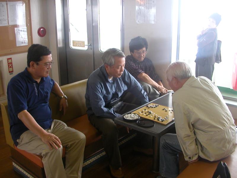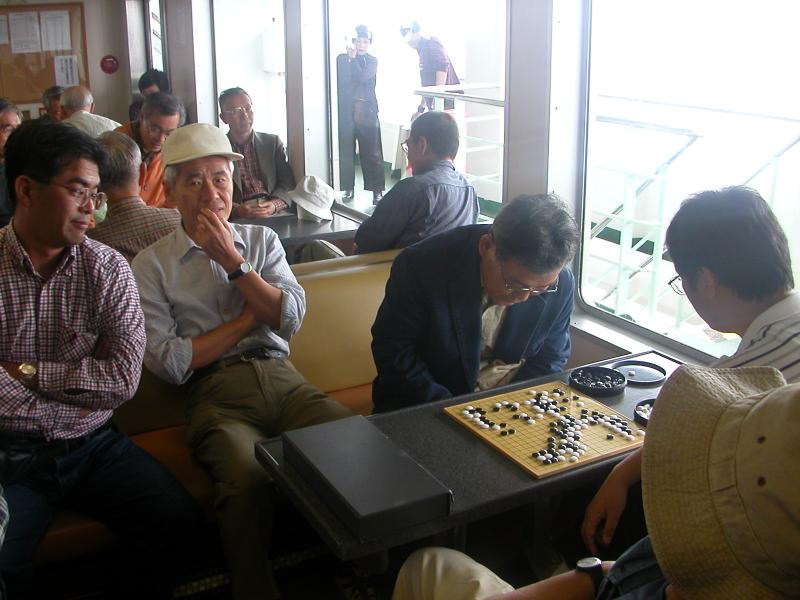 嘉瀬さん(左)、フェリーでの練習碁の成果がでるでしょうか。 |