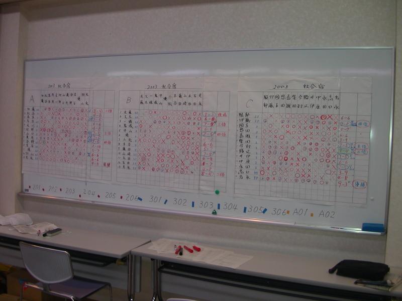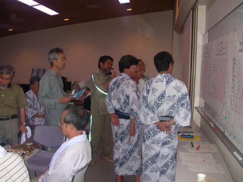 成績表をみて、戦況を語るのも合宿の楽しみのひとつですね。 「ほう、あの人が、、」 「あら?このひとときたら、、」 |
