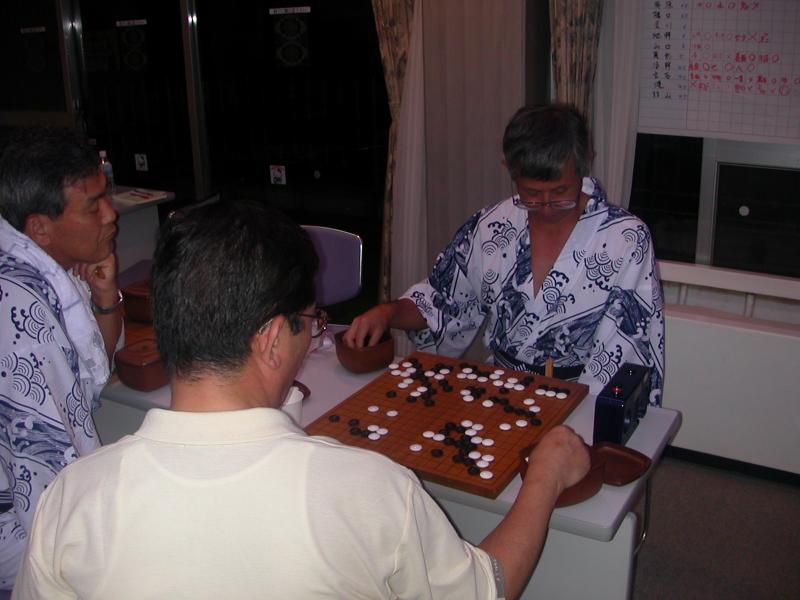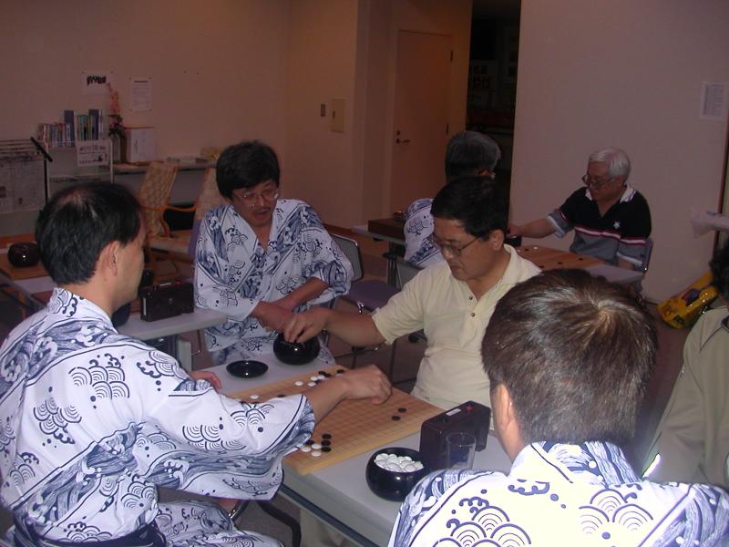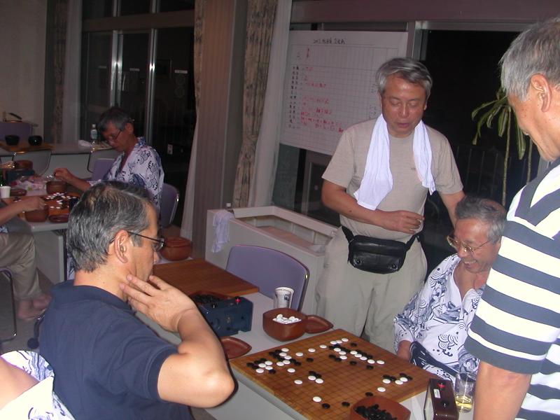 強い光永先生は、大サービスで、夜遅くまで、碁の指導をいただきました。いい先生ですねぇ。 |