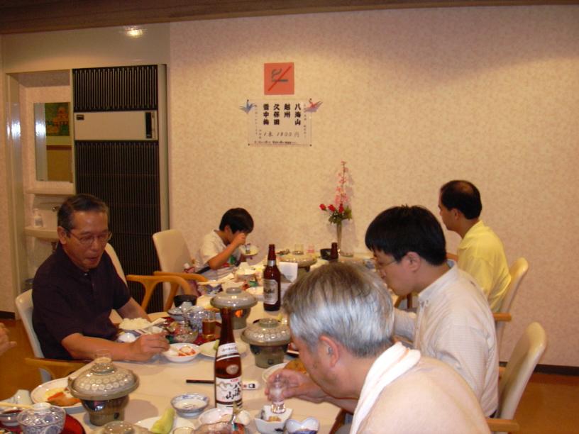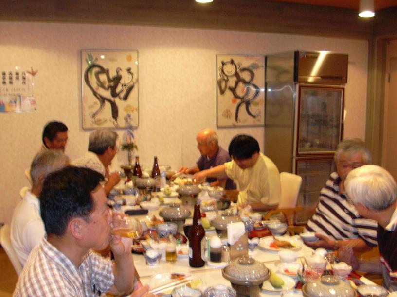 酒がはいって、話もはずみます。「いやあ、ほんとに合宿はいいねぇ」「碁の成績もいいと、なお、いっそういいんだけどね...」「ははははは」 |