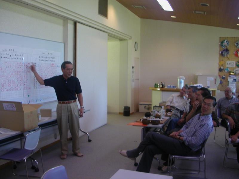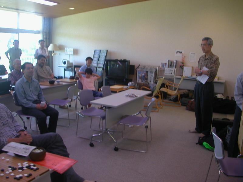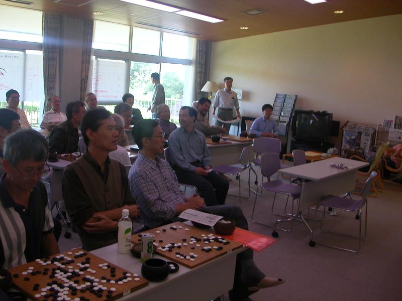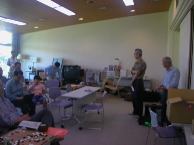 光永先生の講評。「皆さんの碁はほんのちょっとしたことで、きわどく勝たせていただいた碁が多かったです。大変に惜しい碁ばかりでした。ところで、嘉瀬さんはつよかったですよ。あの碁は一番の完敗でした。」 一同 「おおー!嘉瀬さん、すごい!」 |