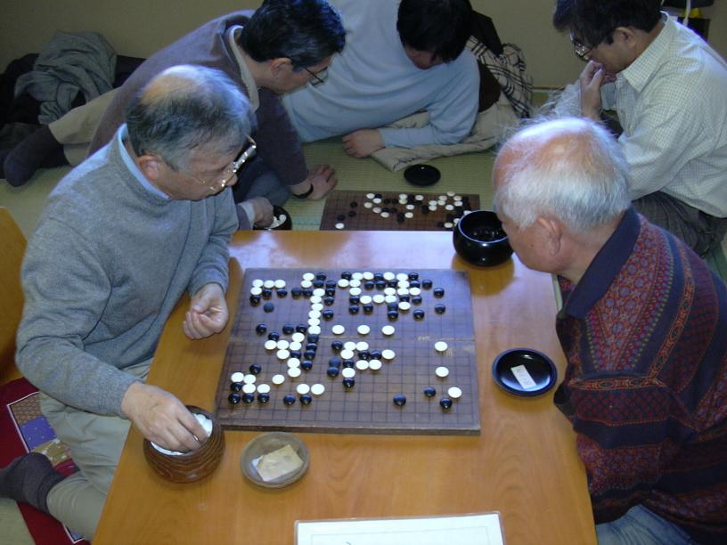幹事合宿は、終了しました。。が、もう一局くらいうってから帰ろう、、と碁をやる人ばかり、、碁キチですねぇ。