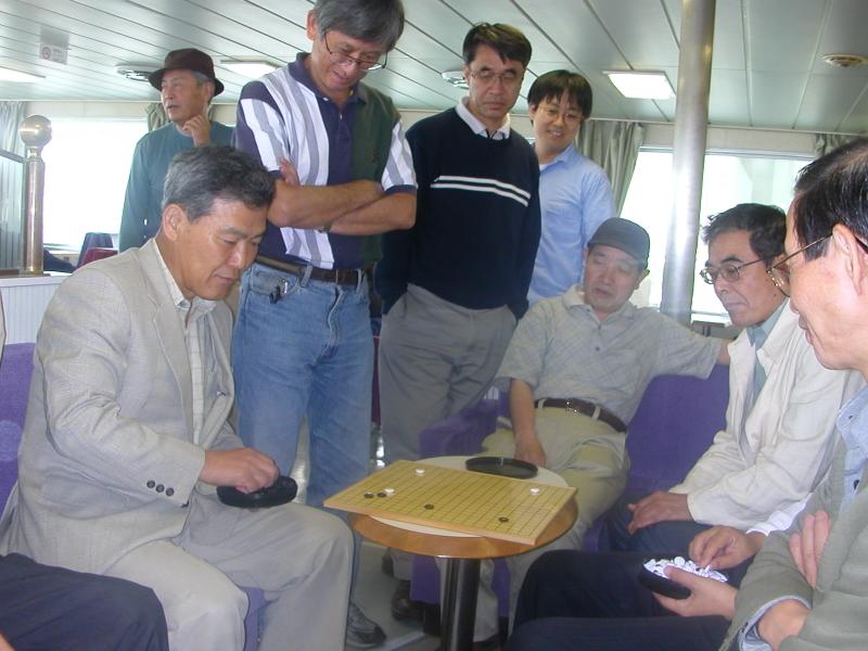 館山合宿終了後、、まだ碁は終ってないようです。フェリーの中での 対局も恒例になっています。あれほど、碁をうったというのに、、