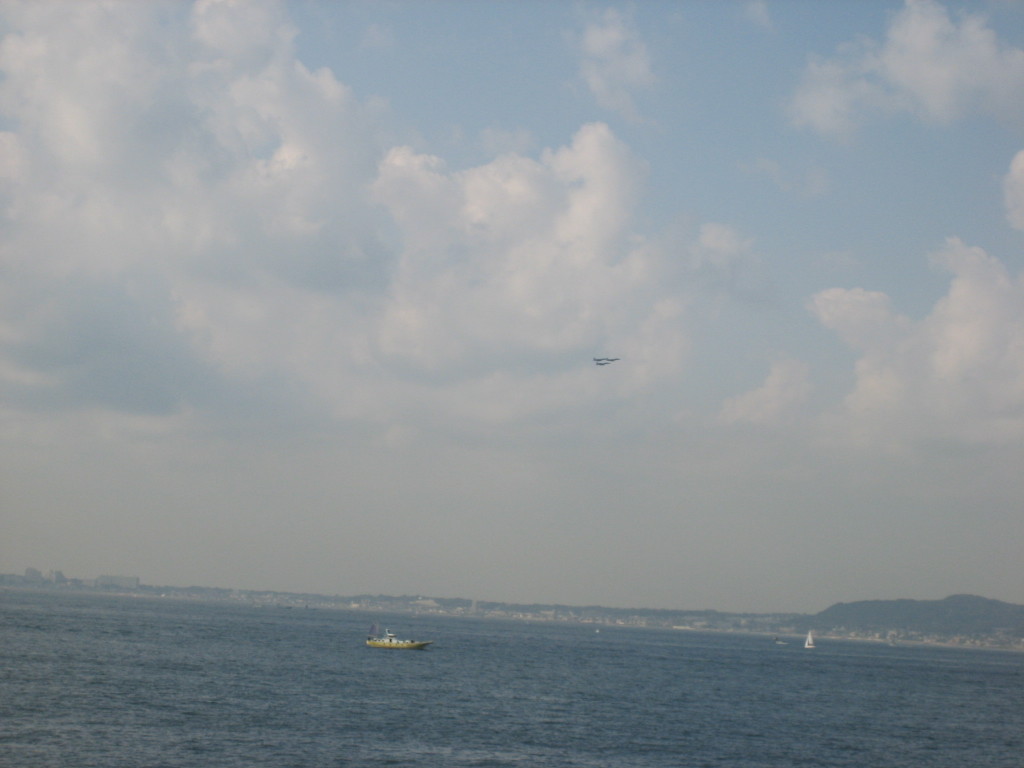 こちらの空にも三羽のカモメ? いえいえ、あれは戦闘機のようです。 |