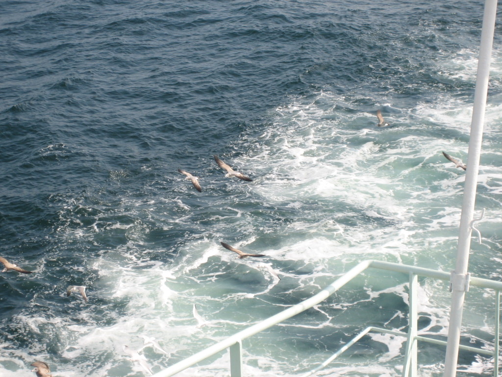 フェリーの外 カモメが飛んできました。 |
