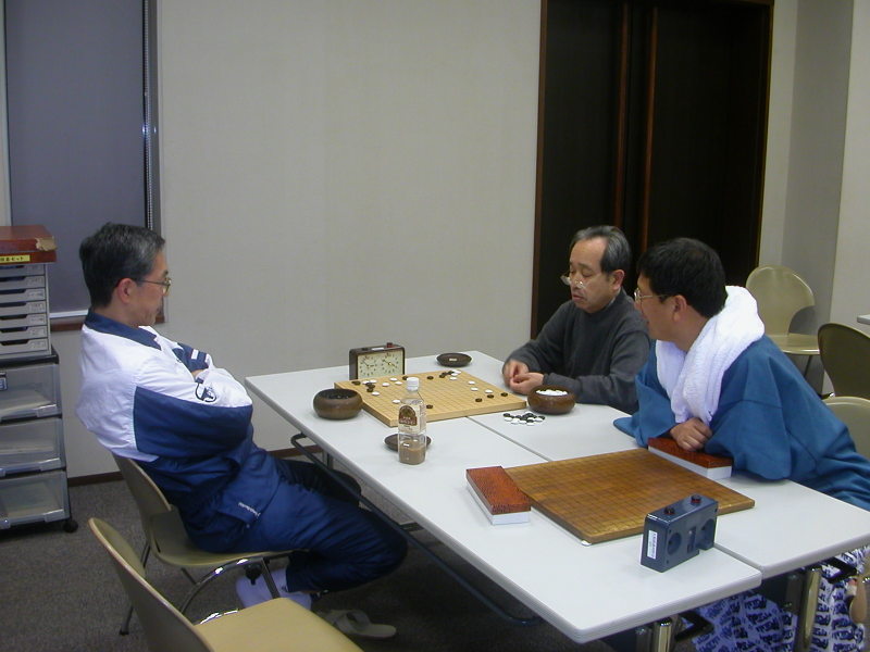 木谷-高本戦は深夜まで感想戦が続きました。 |