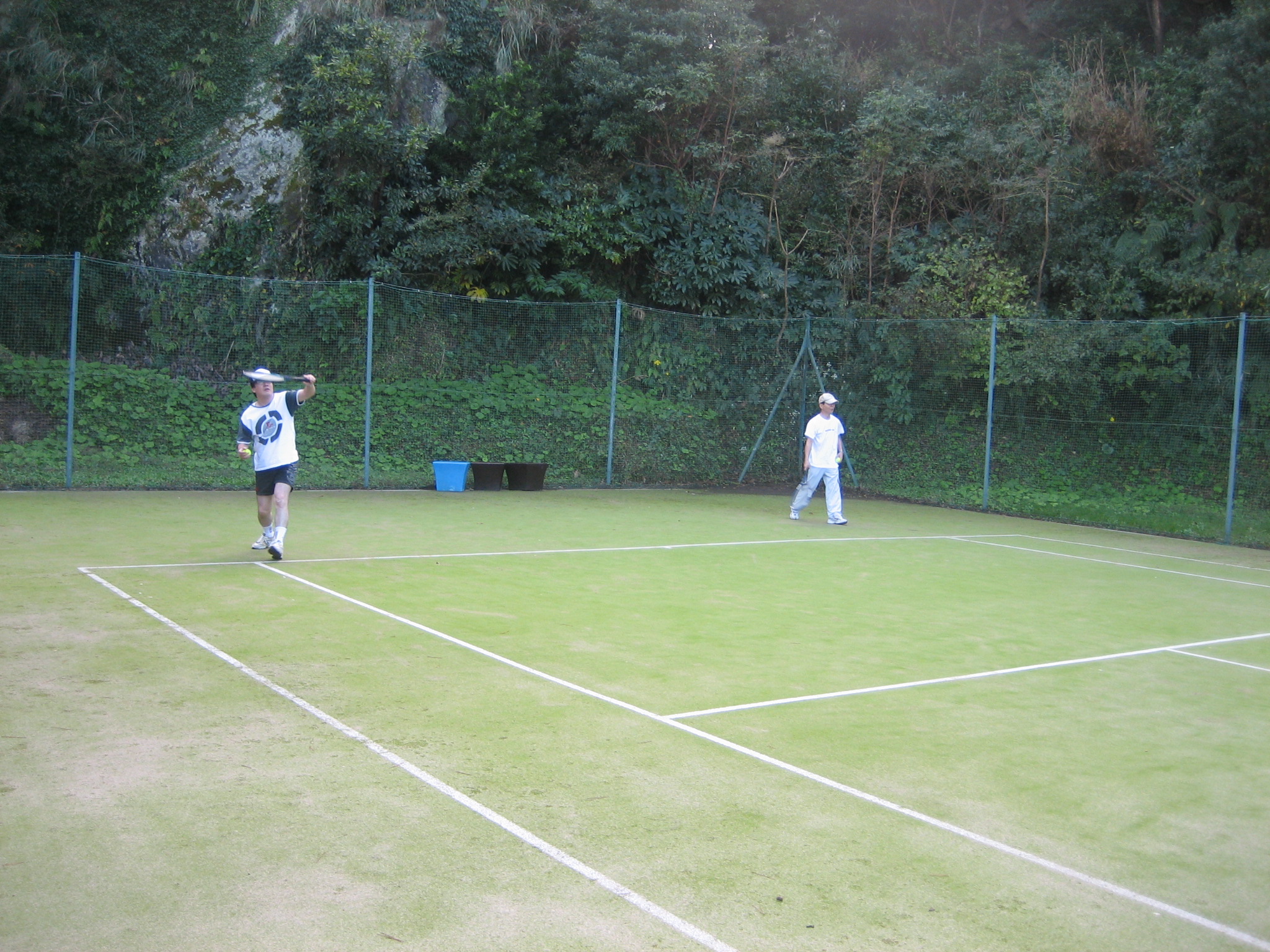 Some members played tennis. The player in the black wear is