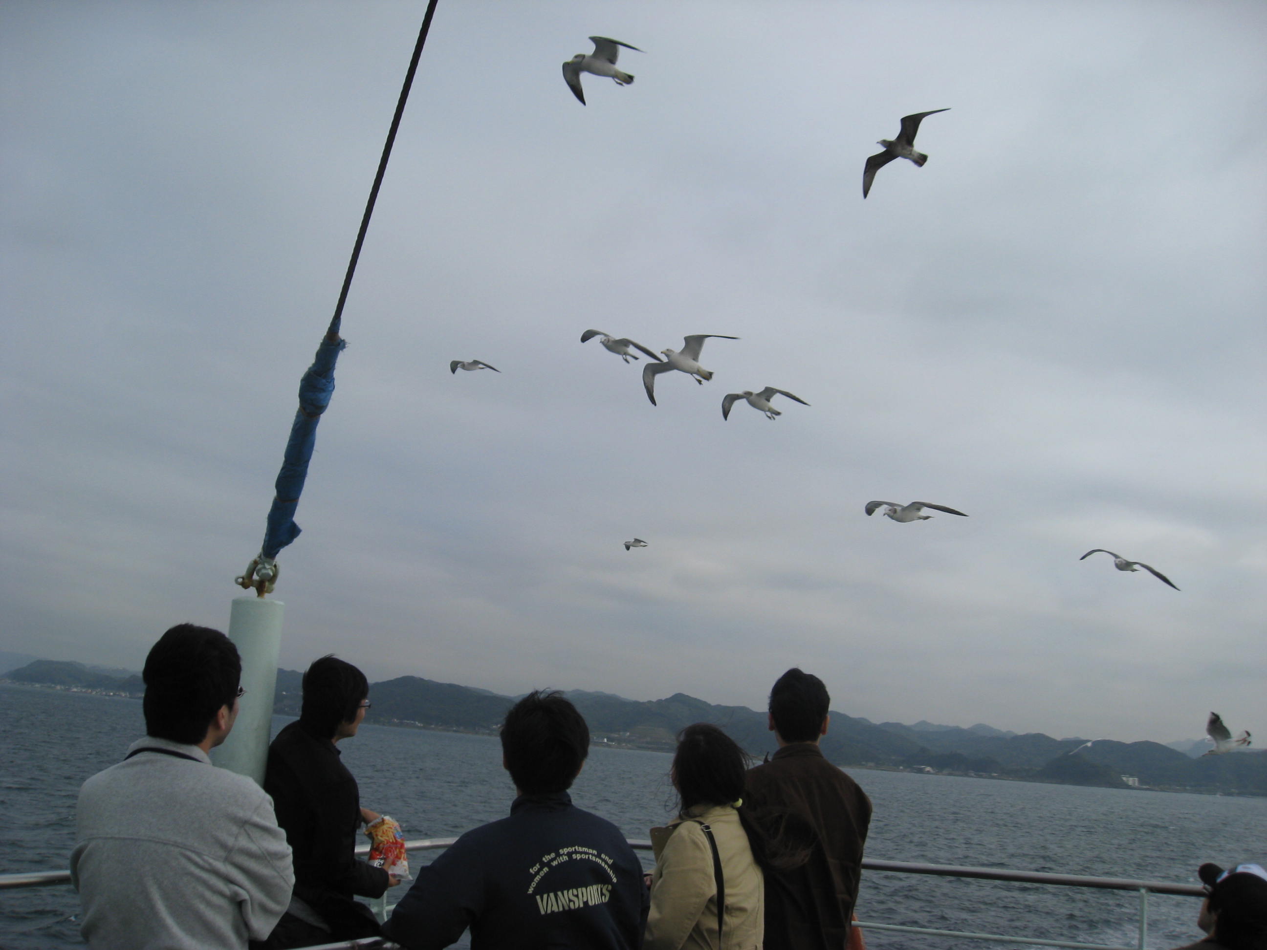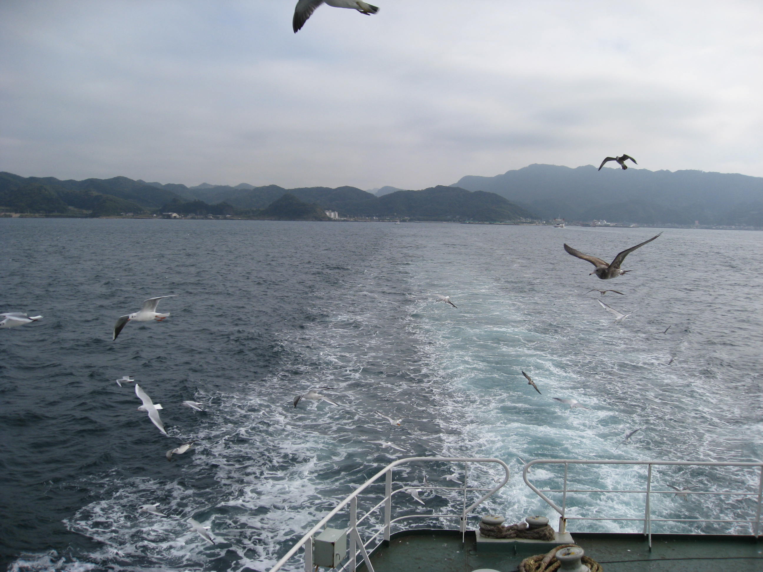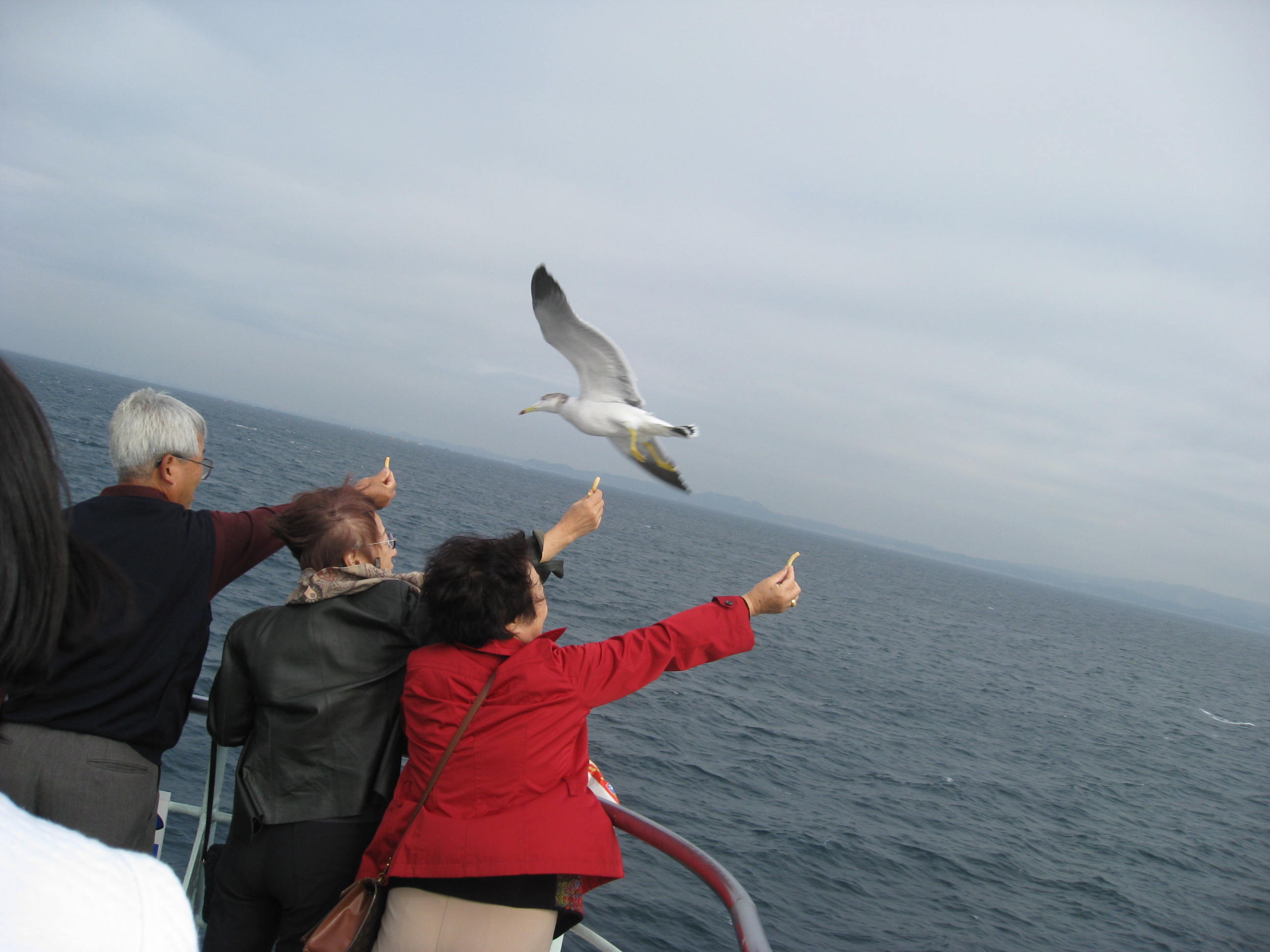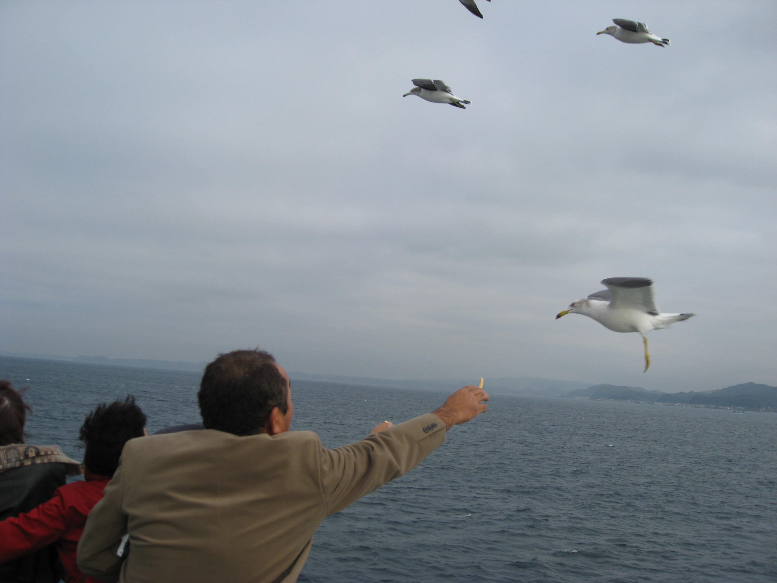 かっぱえびせんが欲しくてフェリーについてきているようです