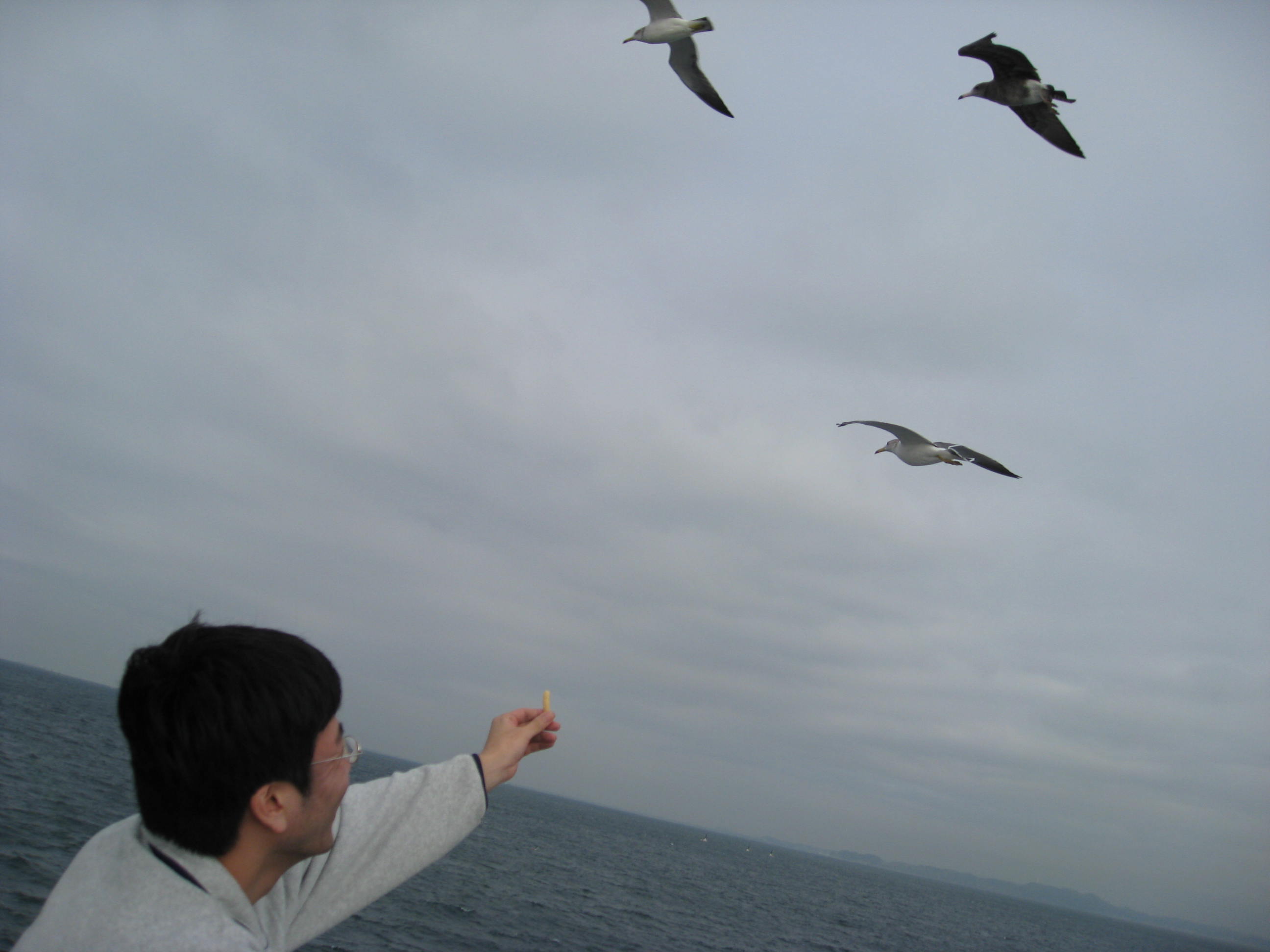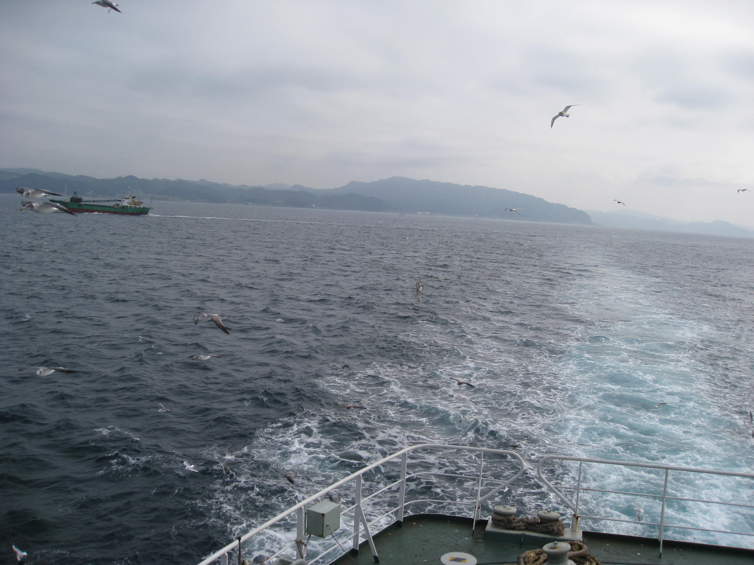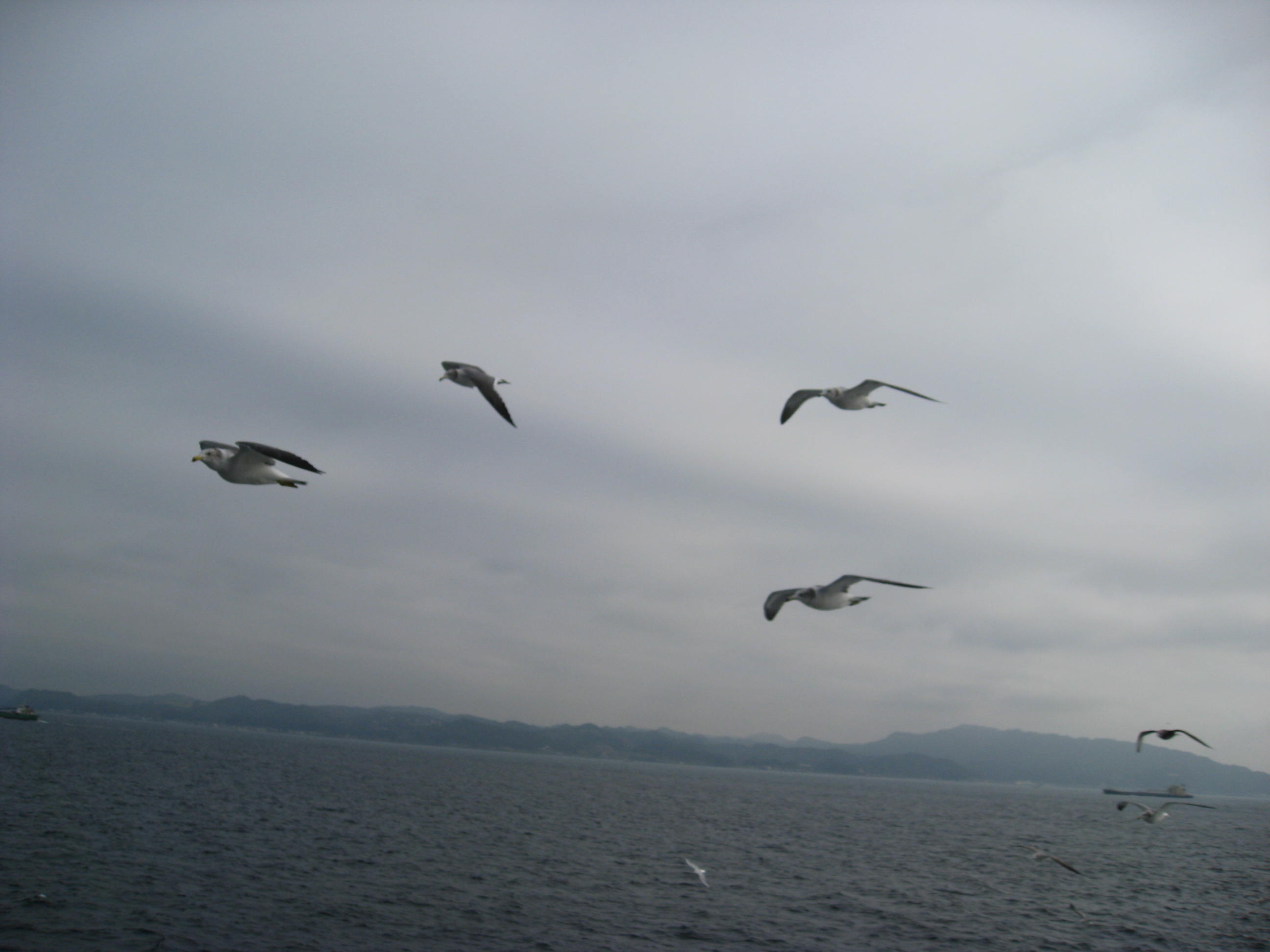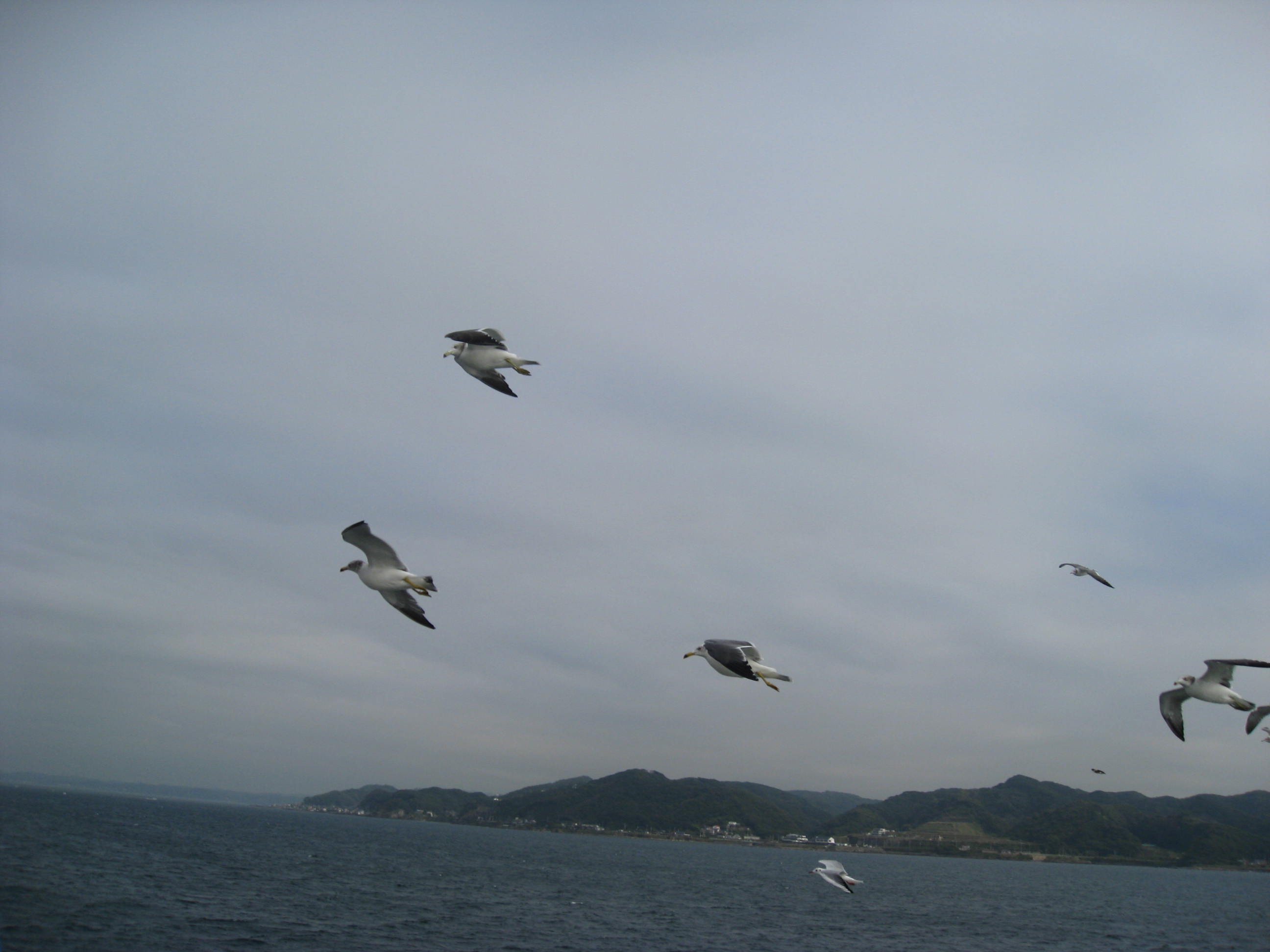かっぱえびせんが欲しくてフェリーについてきているようです