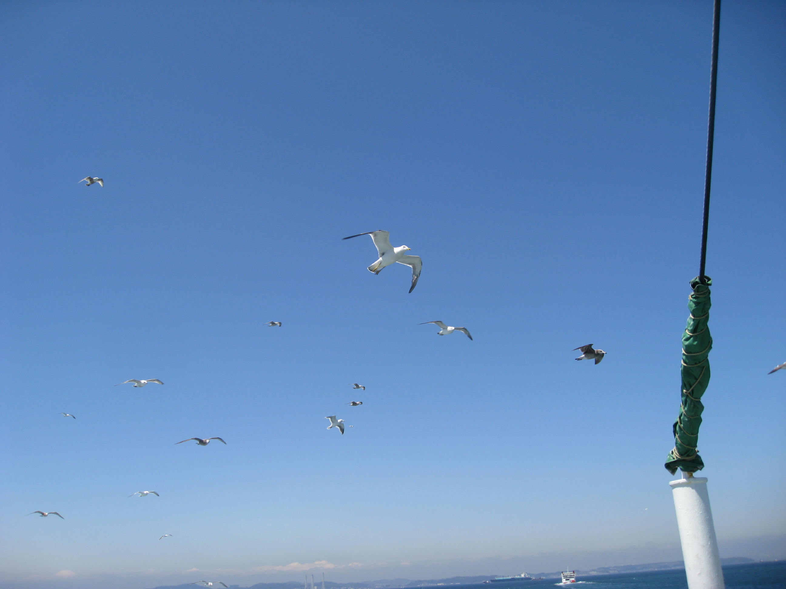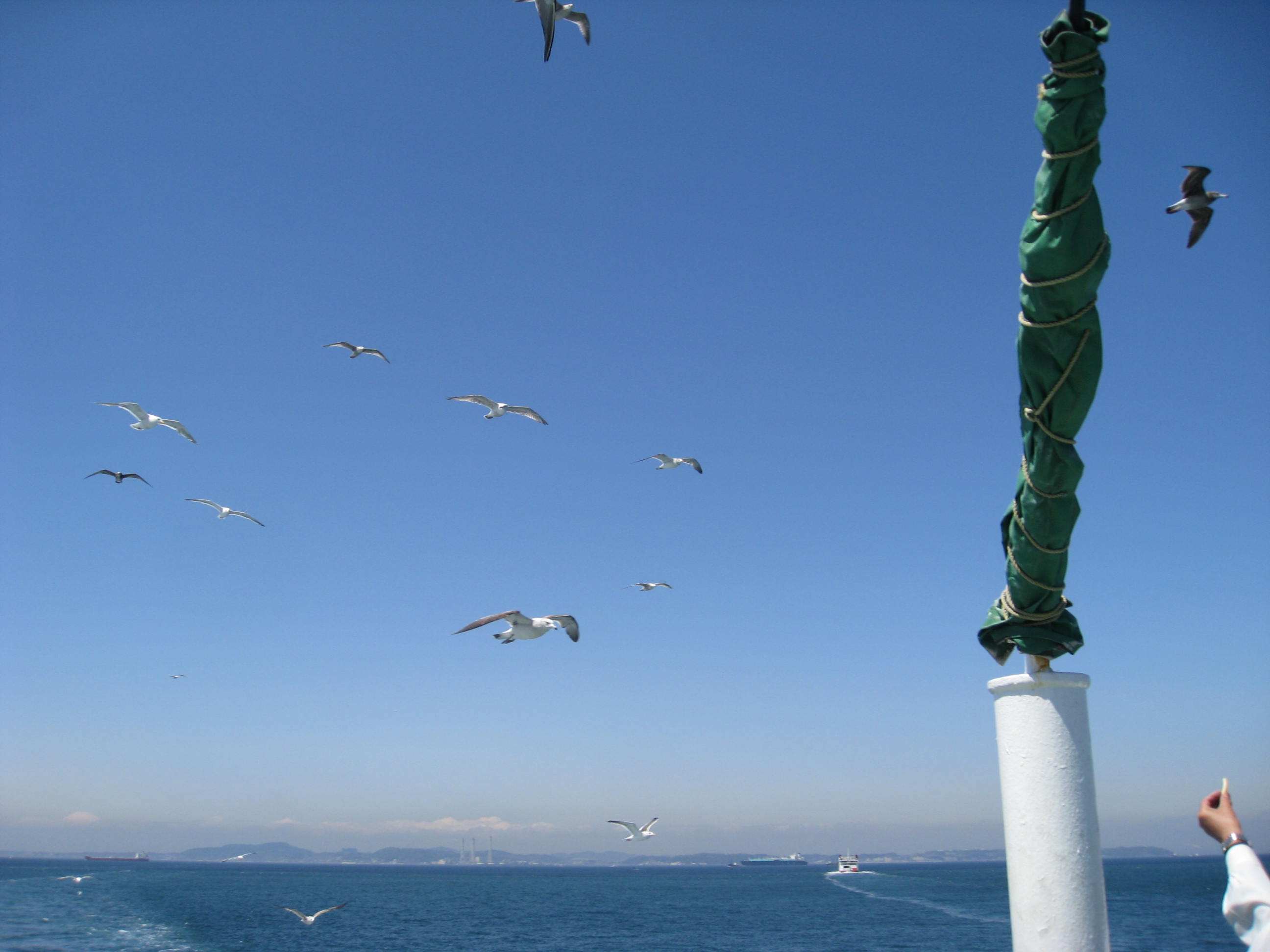 このフェリー上ではカモメがよく見られます