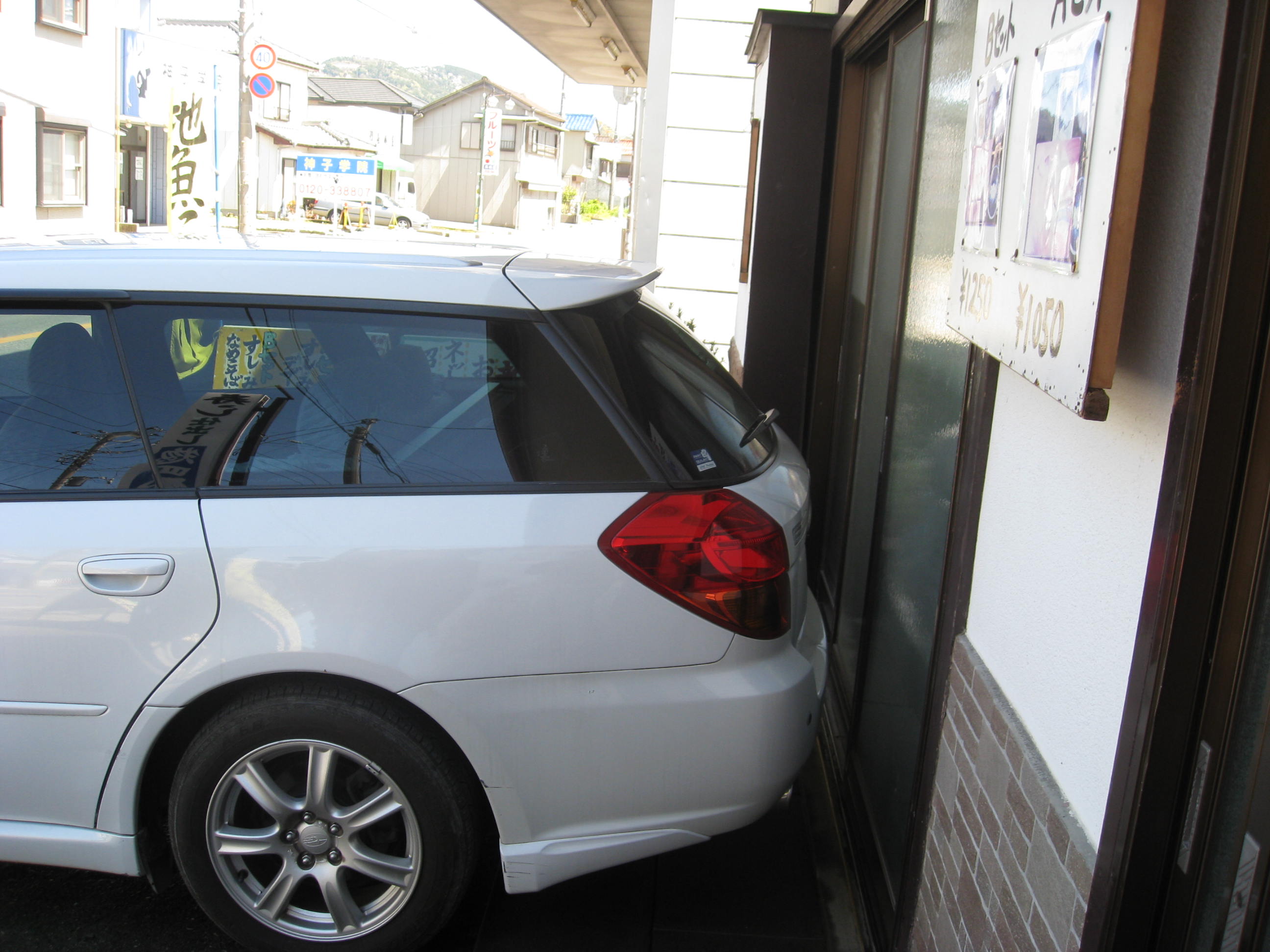 湊さんの車、お店にぎりぎり