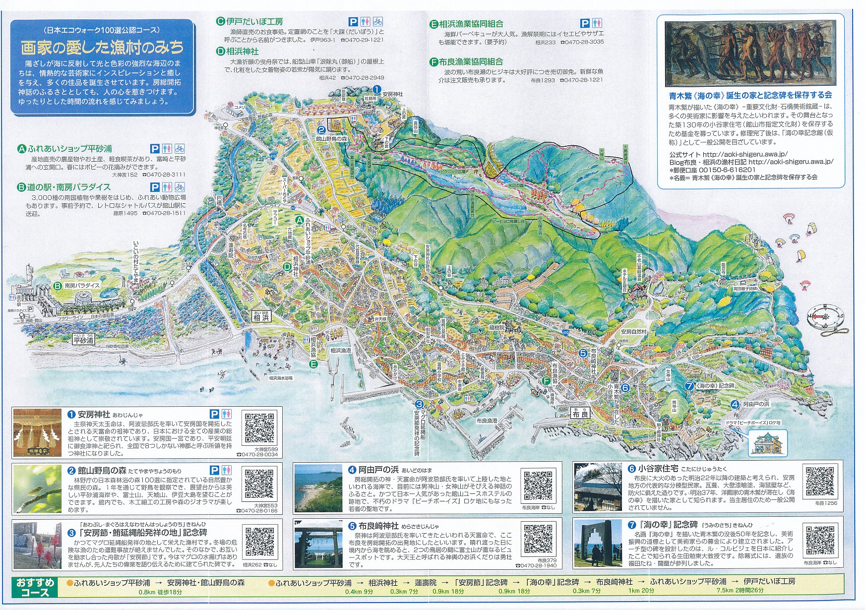 囲碁ばかりの合宿において、体を動かすハイキングは貴重な時間です。 今回は、和田さんにコーディネートいただくことになりました。 [和田さんコメント] 土曜日のハイキング ハイキングのコースを確定します。 コース名: “画家の愛した漁村のみち”(日本エコウォーク100選公認コース) ふれあいショップ平砂浦→相浜神社→連壽院→「安房節」記念碑→「海の幸」記念碑 →阿由戸の浜→安房自然村の不老山能忍寺 「ちば眺望」100景の一つ、 ここで昼食。 →布良崎神社経由で出発点に戻る 10時出発で13時30分ころ保養所到着を予定しています。概略地図は 添付のとおりです。 よろしくお願いします。 コーディネーター:和田さん | |||||||