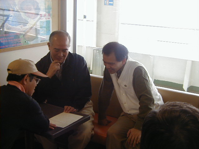 「この碁はどうだったかねえ?」 さっそく、棋譜の検討。皆、碁が好きなんですねえ |