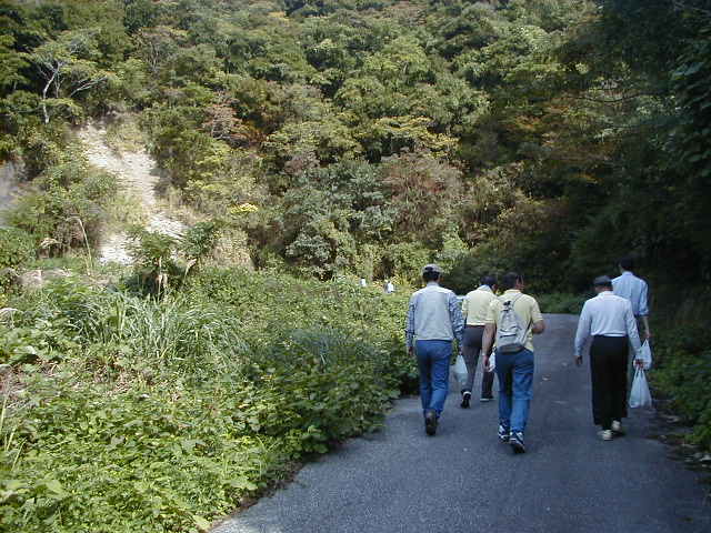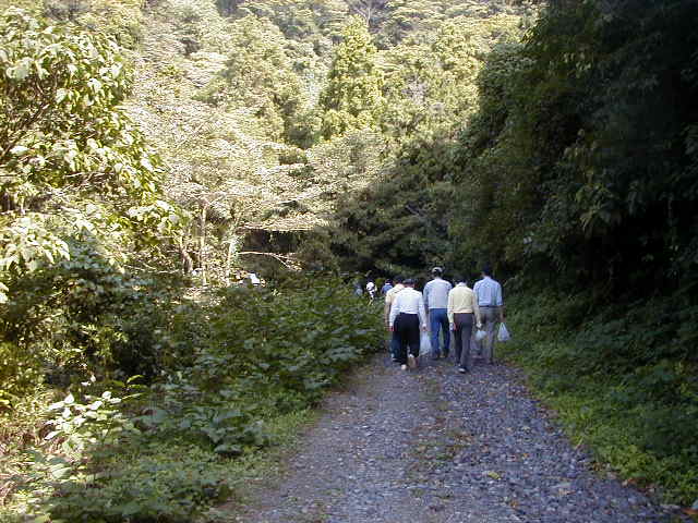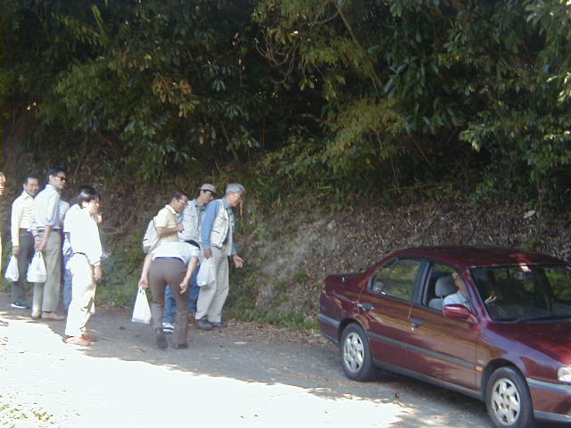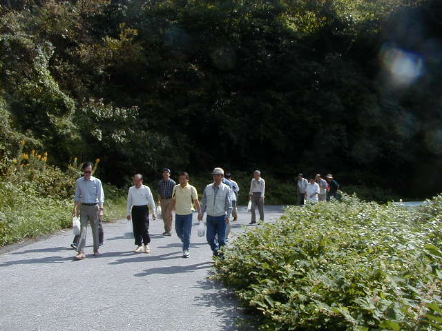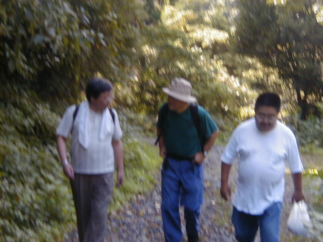 最後を歩くのは、左から波松さん、石田さん、金子さん、、「車でどこにいってたの?? 」「いや、ちょっと道に迷ってね。」 |