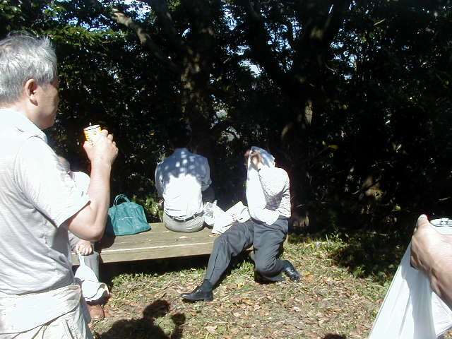 タオルで汗をふいているのは尾崎さん。それじゃ、せっかくのいい顔がみえないですねえ。 |