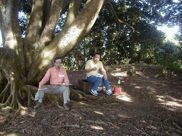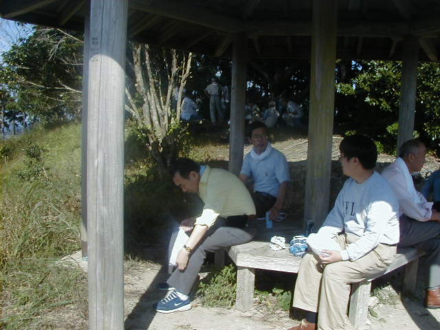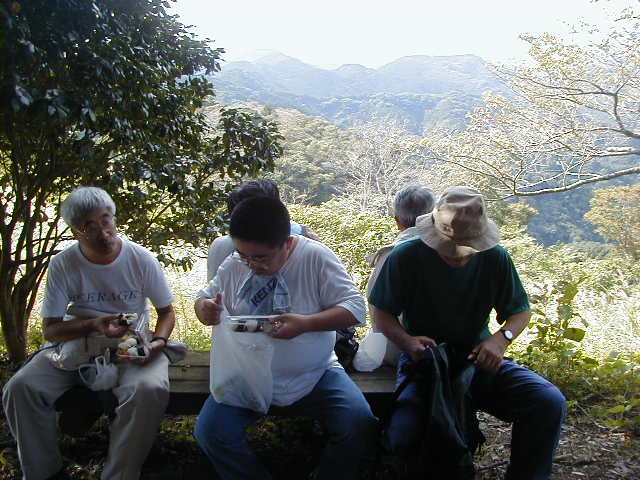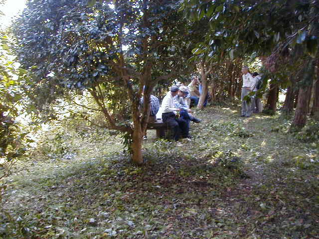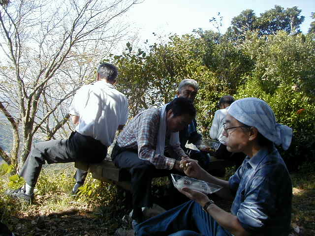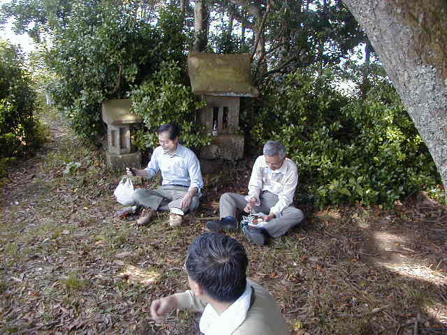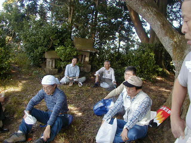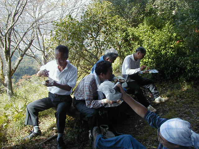 近くには、伐採の仕事をやっているおじさんたちが休憩していて、親切に我々に道をガイドしてくれていました。 |