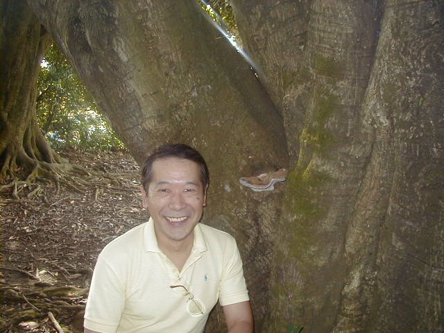 じゃあ、記念にパチリ。いい笑顔ですねー!横から、「そこに腰かけなきゃだめだよー」といわれました。それに反論して、「私は猿じゃないですから。。」 |