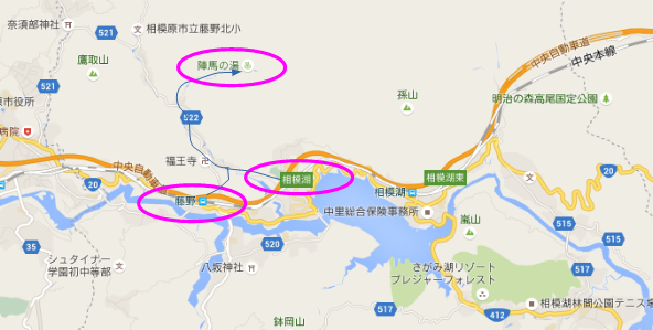 車では相模湖インター、JR(中央線)なら藤野駅がもより駅です。