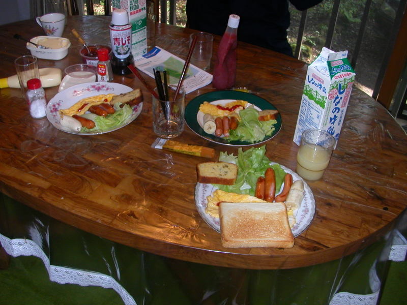 朝のメニュー 不思議ですねー! なんで、こんな素晴らしい朝食ができあがってるの? |