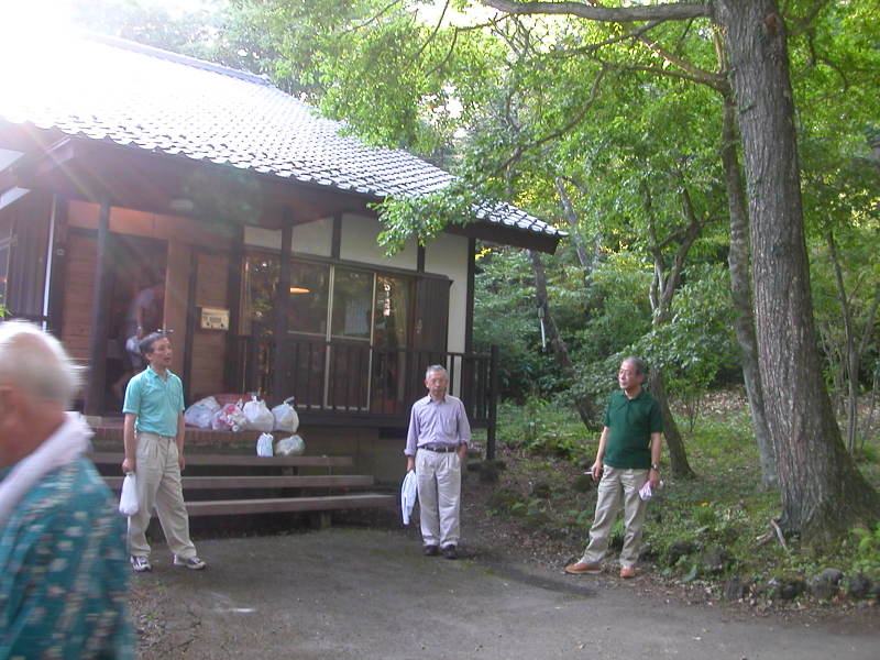 温泉には3台の車でいきましたが、K谷号が夕食の買いだしに先に行くことになりました。他の車は先に帰って、碁でも打っていることになりまいた。早速話がきまって、K谷号の人たちは出発しました。あとの人はゆっくり、歓談して、そろそろ、行こうかとたちあがったところ、、、、、「あーー!家の鍵はだれがもってるの?」「K谷さんだよ。まいったなー」これではしめだされ状態です。。まだ駐車場にいるかもしれない、、と、走っていってみると、Y野さんも気がついたか、鍵をもってきました。「あー、よかった。。」これで、鍵をもって、無事に別荘に戻れます。ところが、他の人は、まだ鍵をもらったことに気がついてなかったので、ずいぶんと出発にてまどりました。 |