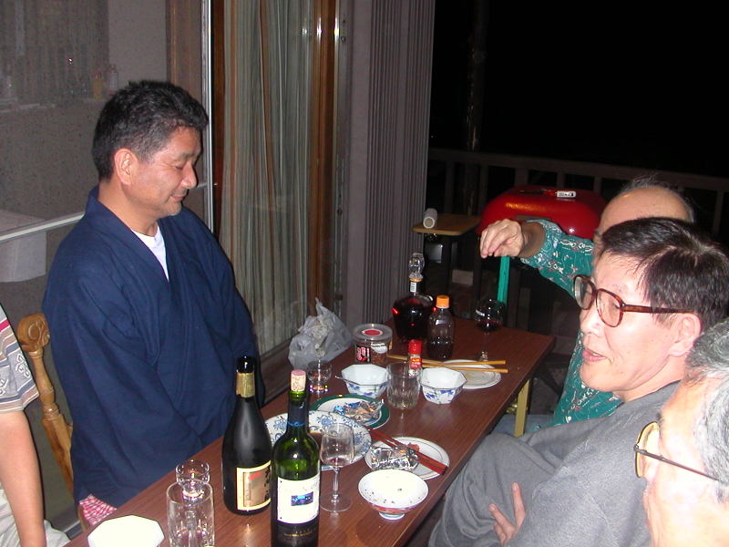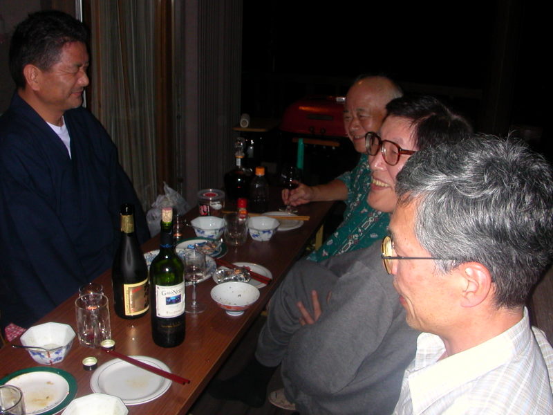 夕食時は、羽山さんの独舌がさえわたりました。最近、もの忘れがはげしくて、どうしようもないけど、こどもの頃の記憶は消えない、xx才からの記憶ならはっきりある、という話も変わってましたが、さらにユニークだったのは、新宿例会に参加することの損得計算です。「一回参加する毎に1K、半年で6K払って優勝賞金3K、これじゃあ、効率が悪いよ、だから、ぼくは新宿にはいかないんだよ!」「……」まわりの皆さんはもう唖然とするよりありませんでした。 |
