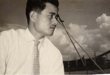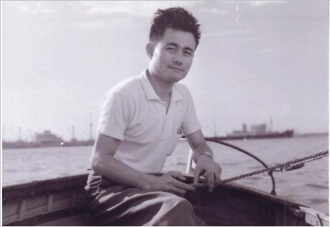 名古屋港でよくヨットにも乗りました。海風を受けての操船は 楽しいものでした。この写真はその時のもので、カラー写真など まだ一般的でない時代でした。この時の剛毛は一体どこへ行って しまったのでしょう?