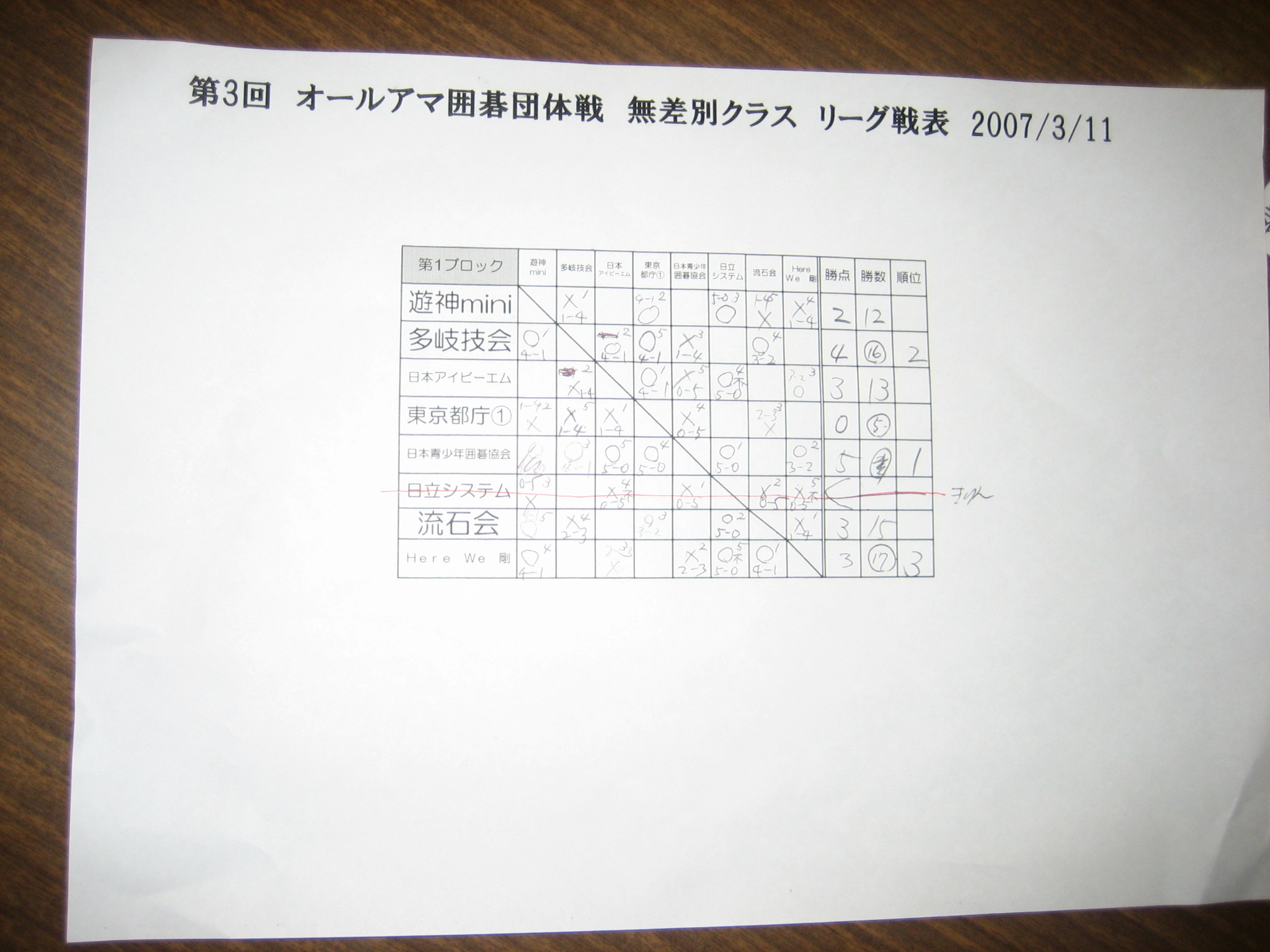 3.大会リーグ表
