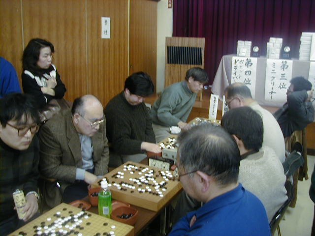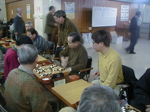 自分の碁が終わったら、仲間の碁の観戦と応援、気が気ではありません。