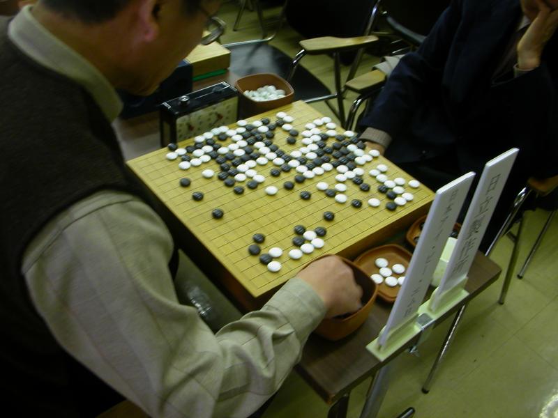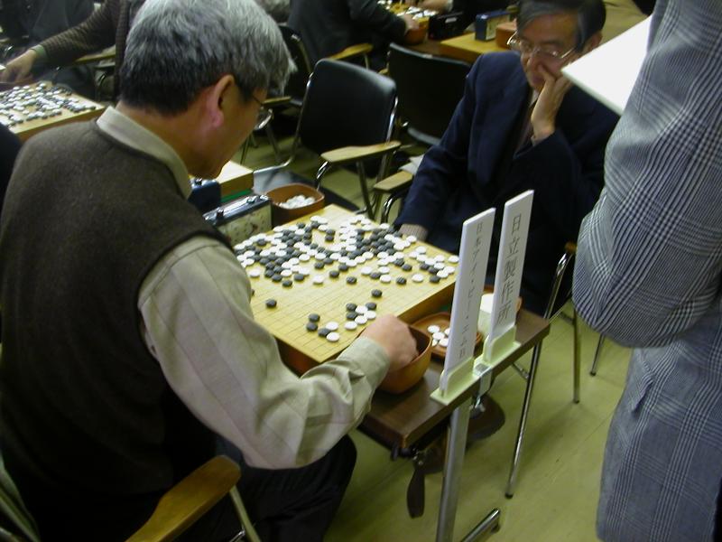 どんな碁をうっているか?? おー、中央の白石をめしとっています。しかも大きな黒地ができている! 及川さん、すごいたたかいぶりです。 |