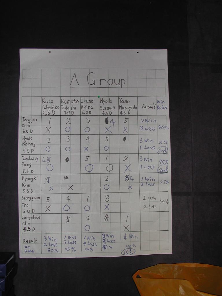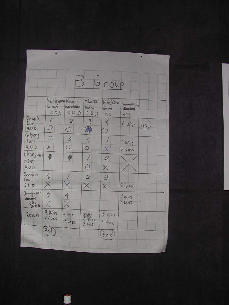 (後列左から) 木谷 Tae Bong Yang (泰鳳 梁)5.5D IBM Korea Inc. Joong Whan Cho 4.5 Jogjin Choi 6.0 Gilyong Hur 4.0 池野 加藤 (中列 同) Hyuk Kahn 5.5 IBM Korea Inc. 牛島 谷野 高本 兵藤 中山 (前列 同) Jongik lee 4.0 Chan Sum Kim (金 昌宣) 4.0 Tekmax Telecom Co.,Ltd. 洗礼名 Peter 水田 Seon Geum Choi 5.0 | |