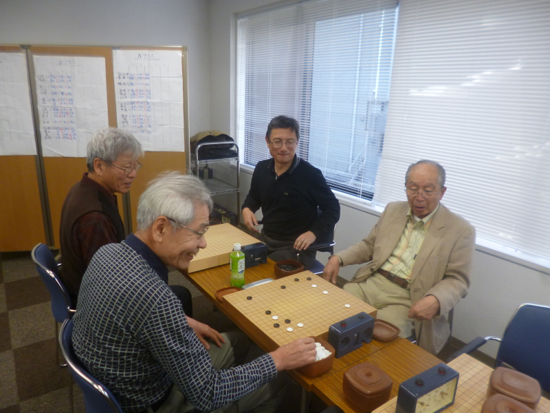 新人のお二人も早速、大会に参加されました。さいさんは、石川さんに9子置いて挑戦!結果はみごと1目勝ちでした!