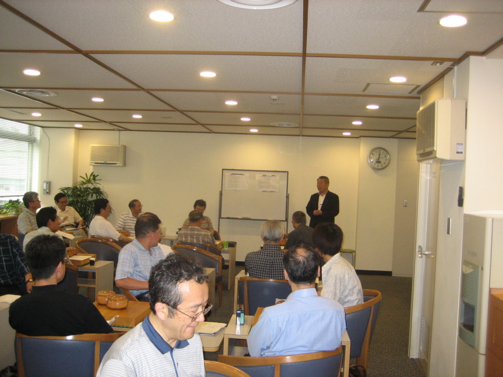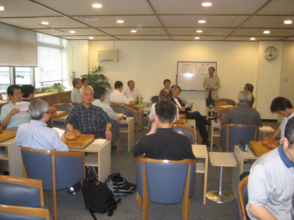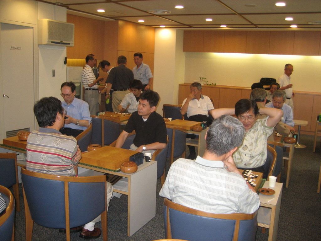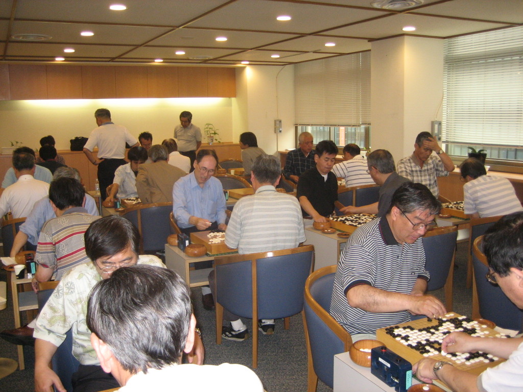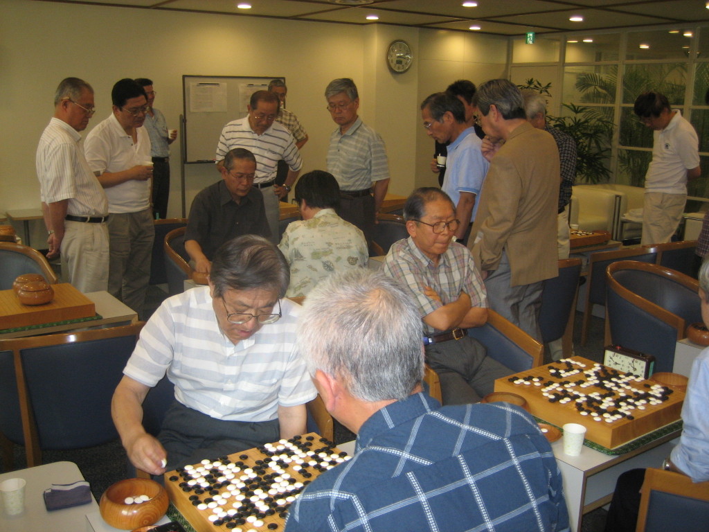 Aクラスの対局、岡野さん(左)と松谷さん 岡野さんはIBM岸原さんと10年以上前に碁会所で1日に4局対局したという縁のある方です。 |