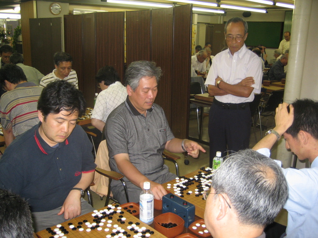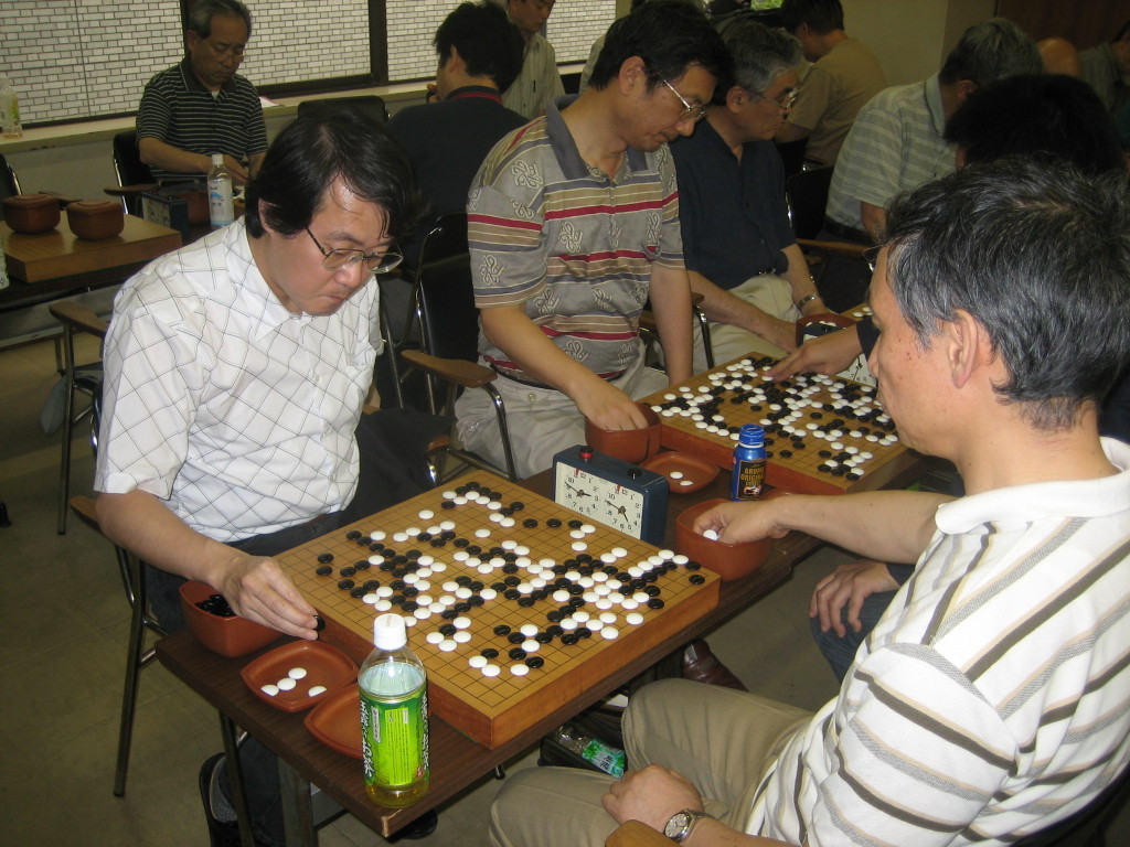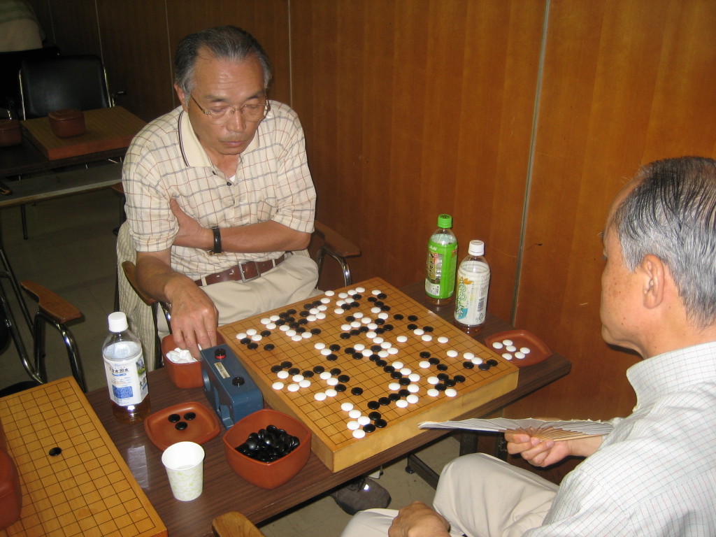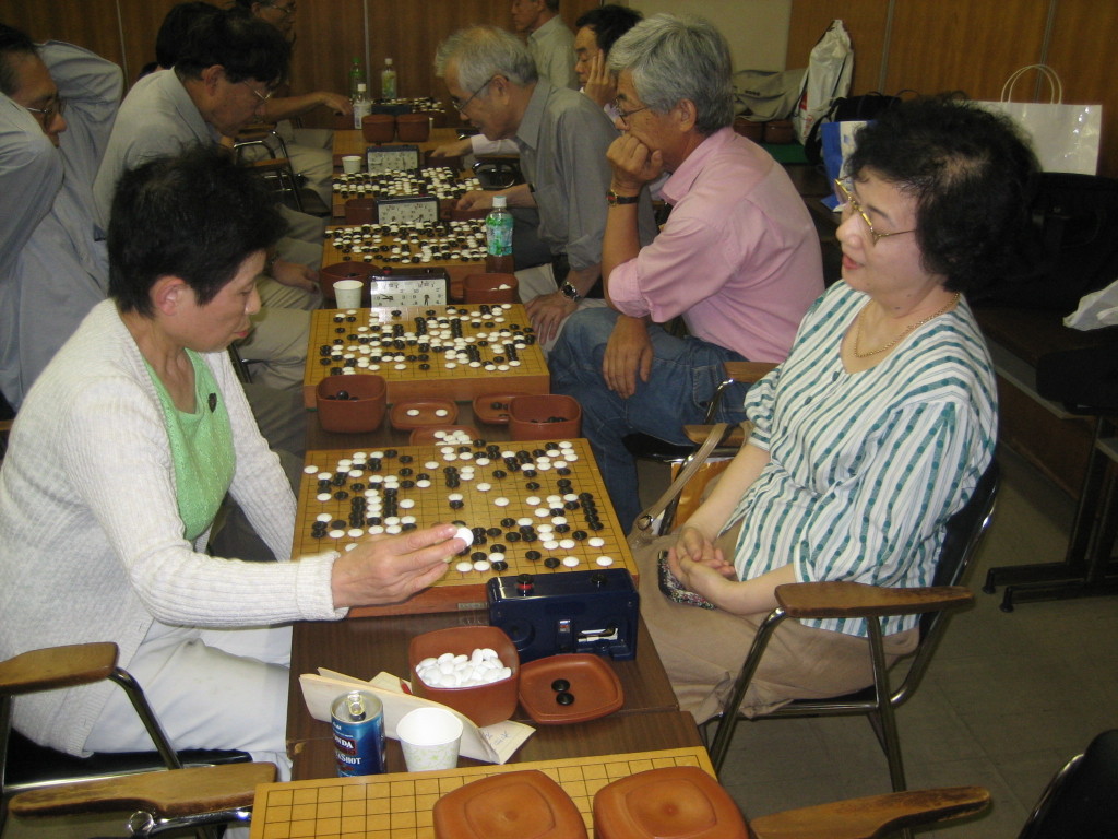 Aクラスはハイレベル、池上さん、遠藤さんの対局を小津さんが見守っています。